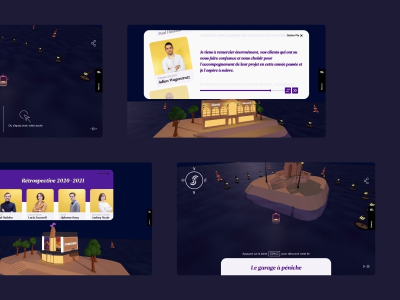 These graphic and technical challenges pushed us to implement multiple optimization techniques. The game is available on computer and mobile with a dedicated navigation mode for each device.